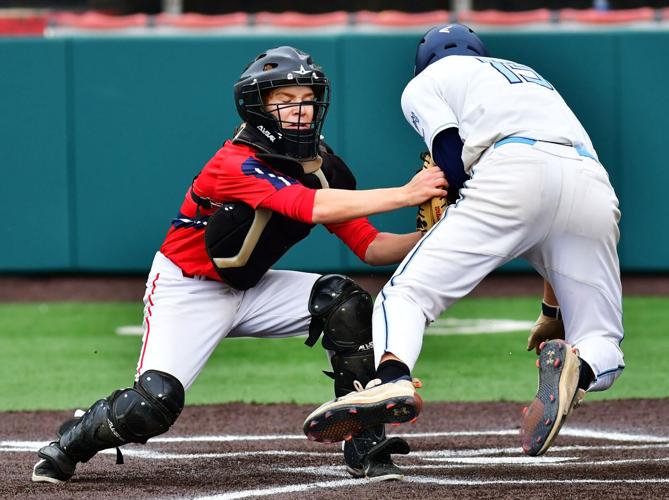Alexandria shortstop JD Hennen places the tag on Detroit Lakes Hunter Korth for the out as Korth tries to steal second base during the Section 8-3A playoff opener in Alexandria on May 31 2022. Division 2 baseball championship. Capable of using up to 7500 sqft.